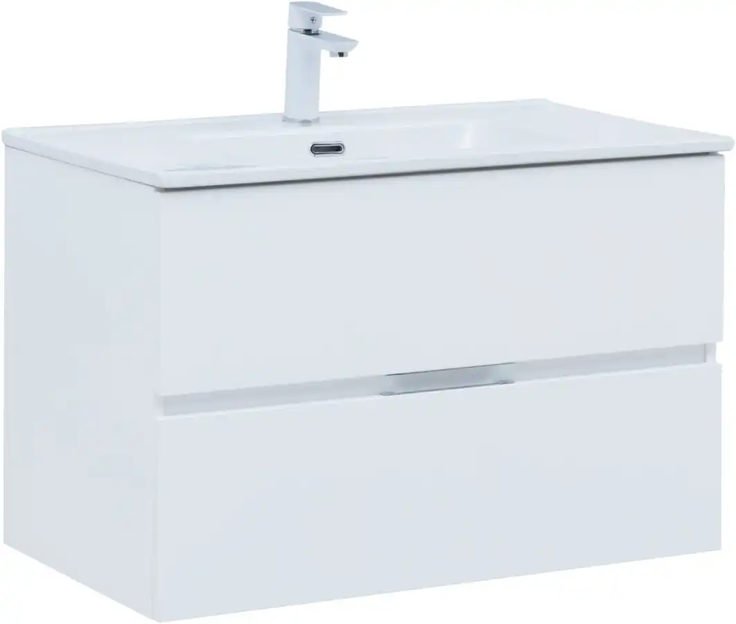 Тумба под раковину Aquanet Алвита New 80 см, подвесная, цвет Белый, 277514. Раковина приобретается отдельно.