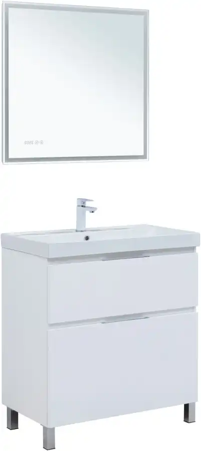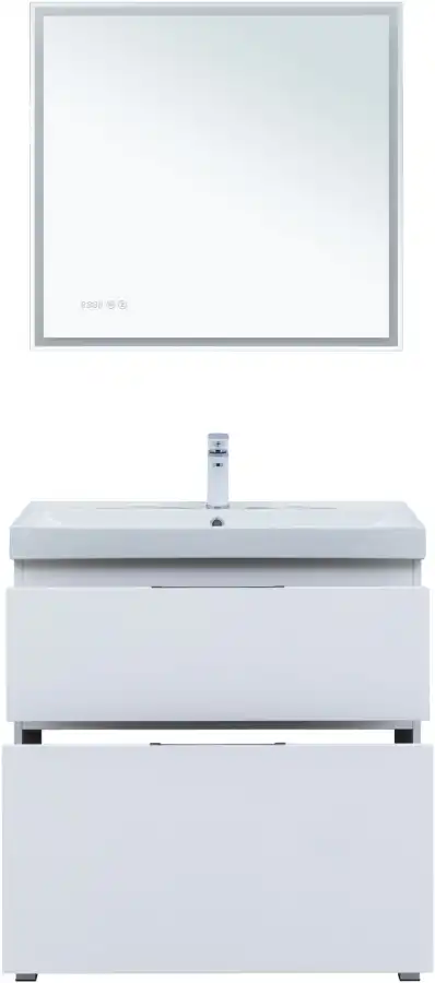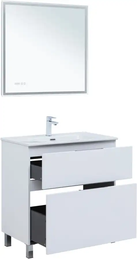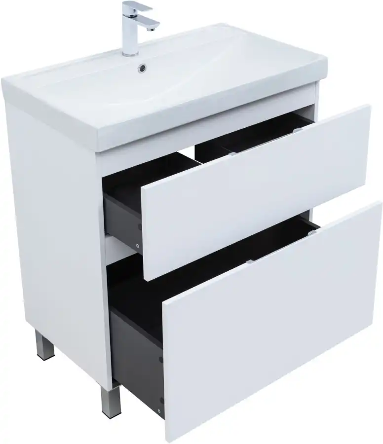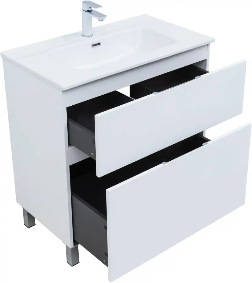 Тумба под раковину Aquanet Алвита New 80 напольная, белый матовый. Внутренние детали изготовлены из влагостойкой ЛДСП в цвете антрацит.