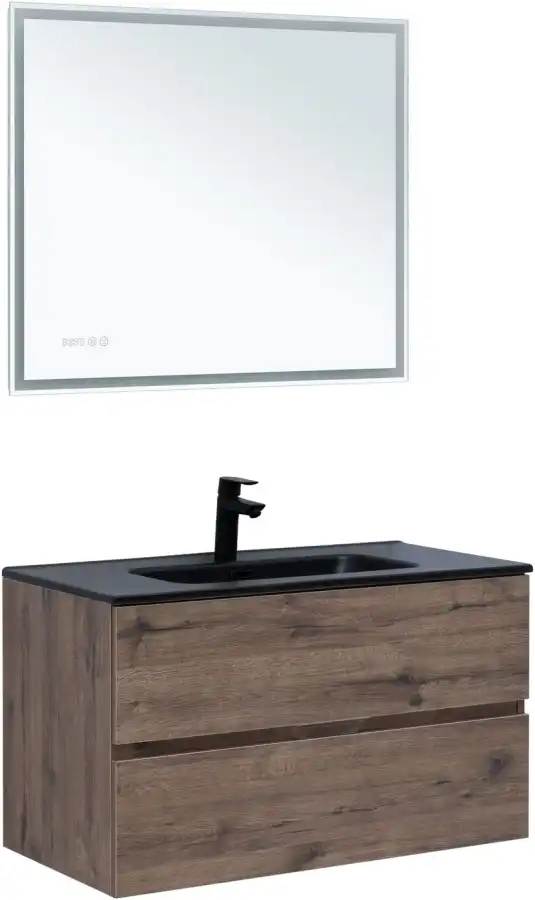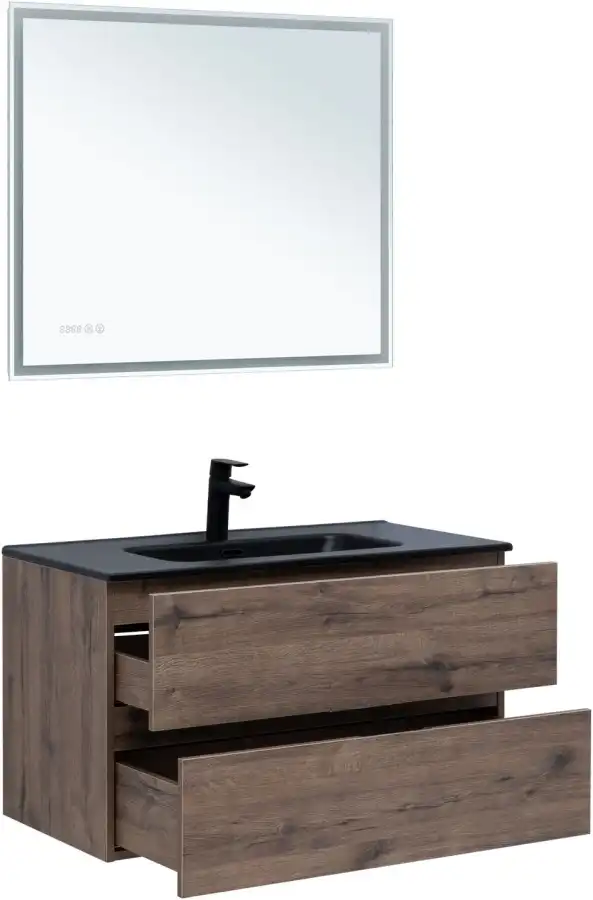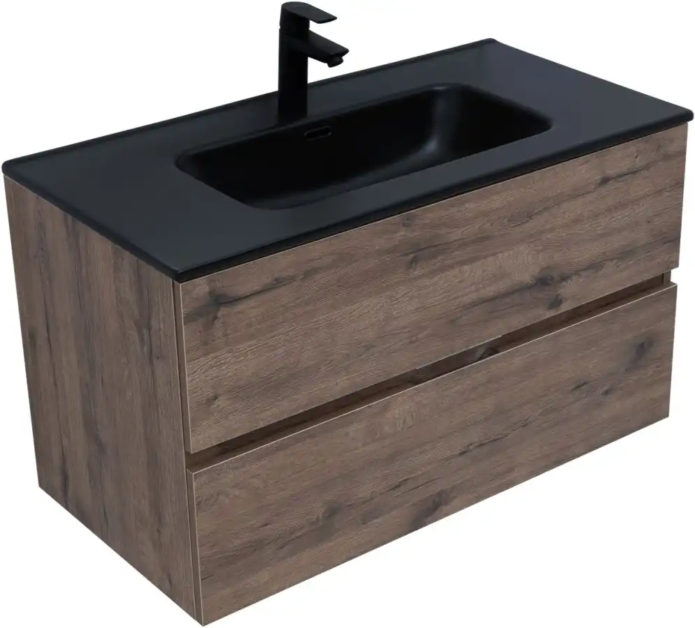 Тумба под раковину Aquanet Алвита New 90 см, подвесная, цвет Дерево темное, 334187. Раковина приобретается отдельно.