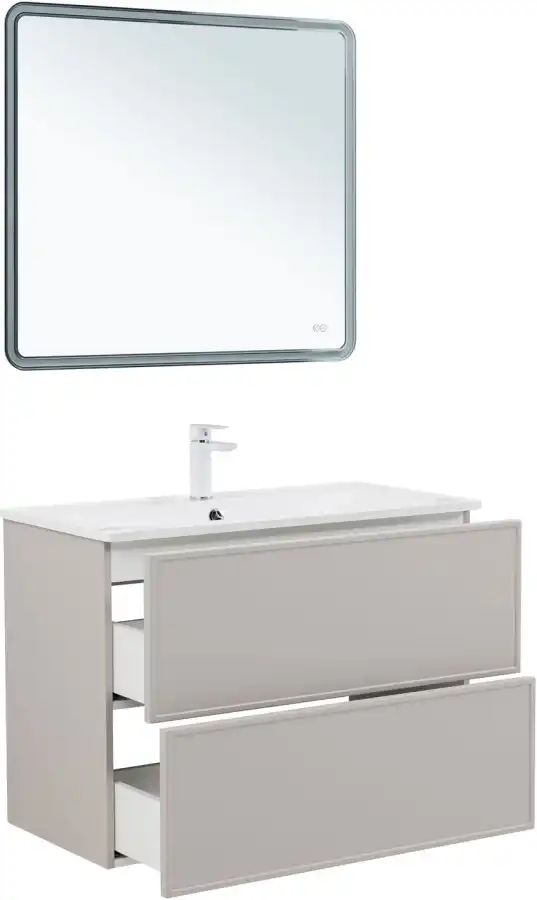Тумба под раковину Aquanet Арт 90 бежевый Тумба под раковину Aquanet Арт 90 бежевый — практичное и стильное решение для ванной комнаты. Корпус и фасады изготовлены из МДФ, покрытого суперматовой пленкой ПВХ повышенной прочности с эффектом «Soft touch». Покрытие не только приятное на ощупь, но и обеспечивает надежную защиту от влаги. Полимерная структура пленки не пропускает воду, предотвращая деформацию и сохраняя внешний вид мебели надолго. Поверхность тумбы бархатистая, устойчивая к царапинам. Внутренние детали выполнены из влагостойкой ЛДСП белого цвета. В комплекте — пластиковое ограждение сифона в минималистичном дизайне. Оно имеет прямоугольную форму и прочно крепится ко дну выдвижного ящика. Ящики тумбы удобны в использовании. Их дно изготовлено из влагостойкой ЛДСП толщиной 16 мм, что гарантирует долговечность. Направляющие скрытого монтажа с системой Push-to-open позволяют открывать ящики легким нажатием на фасад. Навесы выдерживают нагрузку до 130 кг, обеспечивая надежность конструкции. За нижним ящиком предусмотрено место для подводки коммуникаций снизу. Тумбу можно установить на универсальные опоры высотой 200 мм (опоры приобретаются отдельно). Тумба комплектуется раковинами из литьевого мрамора Арт 60/75/90/100 или столешницами из керамогранита Nova Lite. Это делает ее универсальным решением для разных интерьеров. Aquanet Арт 90 бежевый — функциональная и эстетичная мебель, которая сочетает в себе прочность, влагостойкость и современный дизайн.
