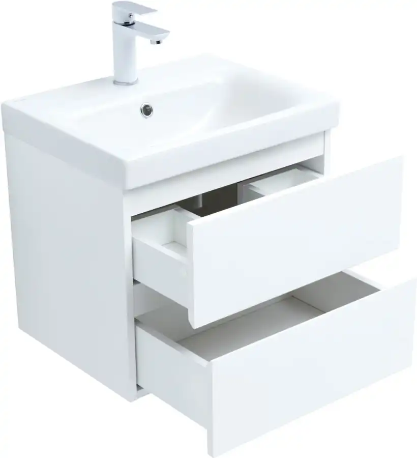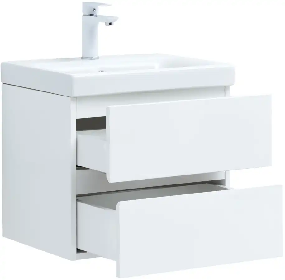 Тумба под раковину Aquanet Беркли 50 белый глянец (2 ящика) 302347