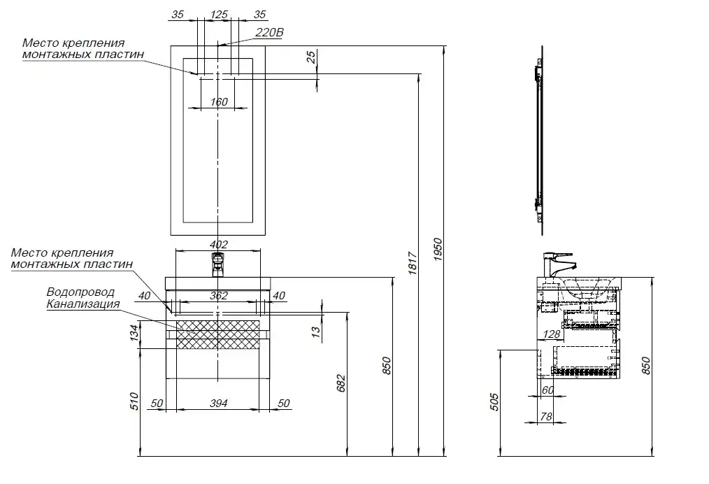 Тумба под раковину Aquanet Беркли 50 см, подвесная, цвет Белый, 302347. Раковина приобретается отдельно.