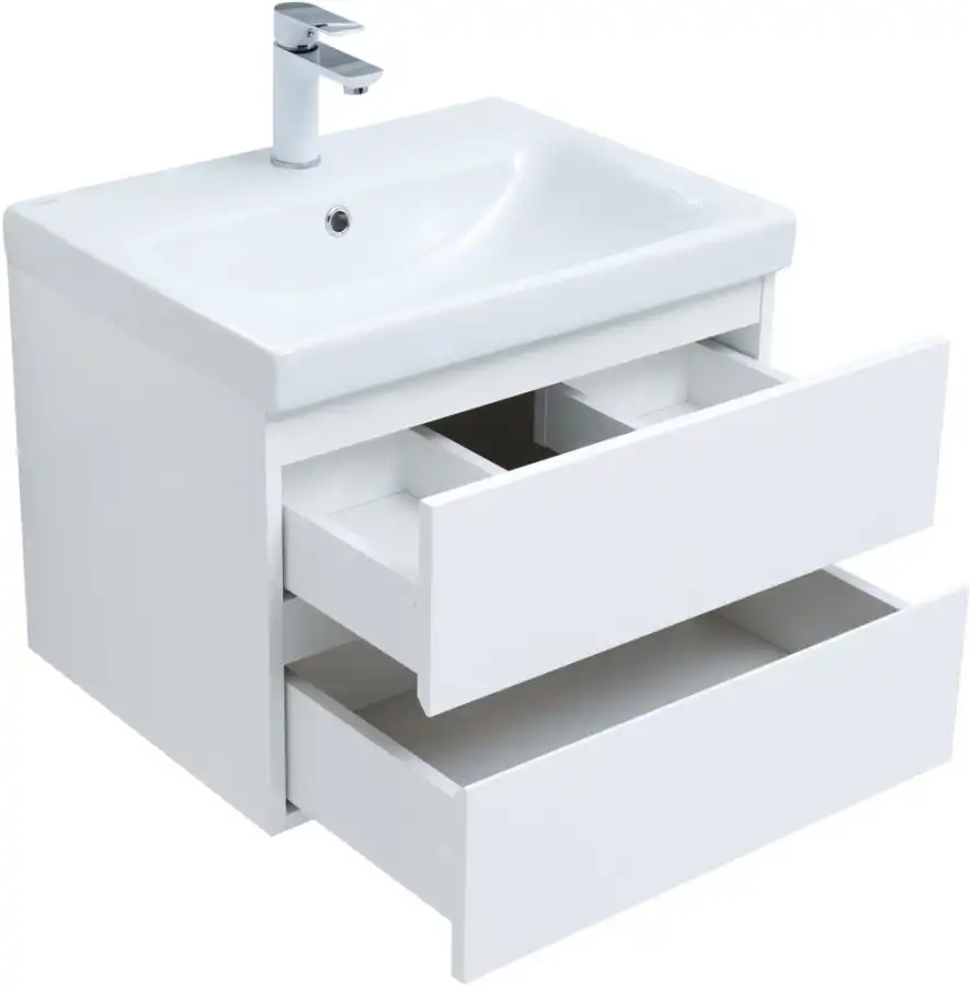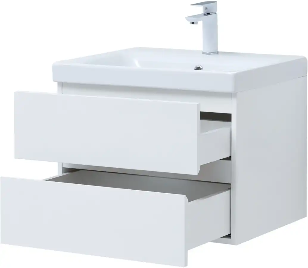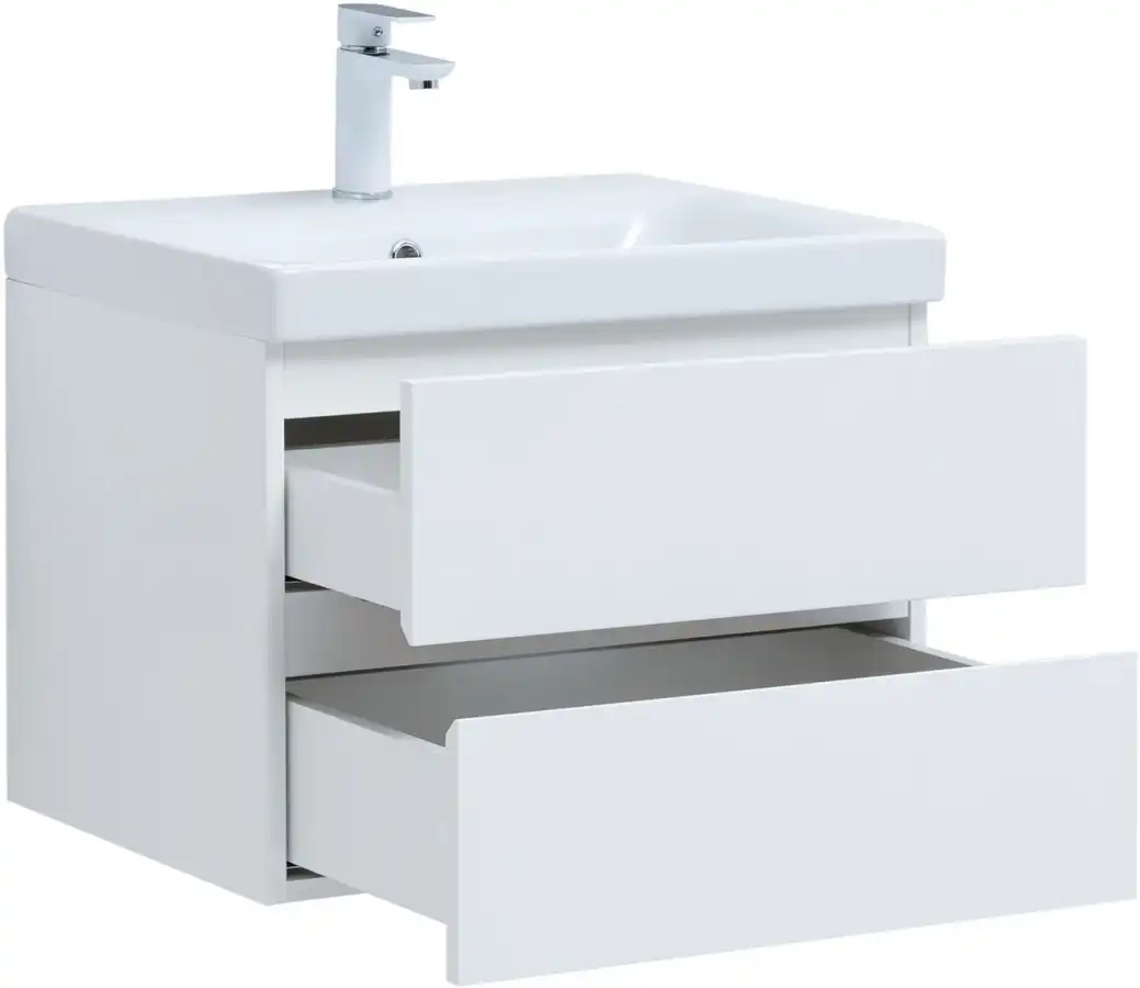 Тумба под раковину Aquanet Беркли 60 белый глянец (2 ящика) 302349