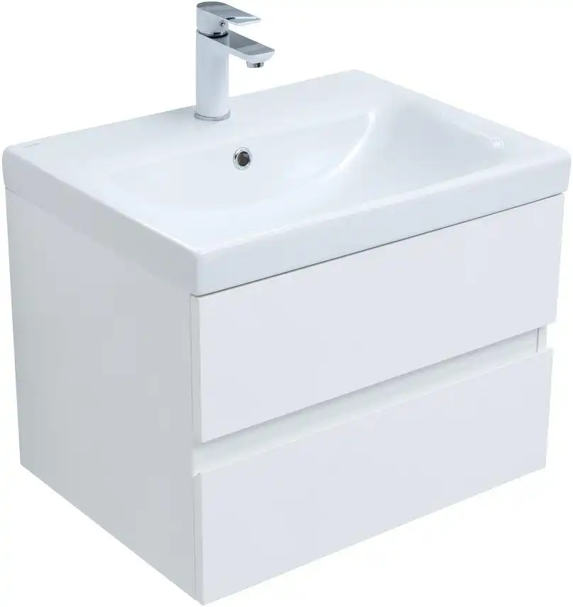 Тумба под раковину Aquanet Беркли 60 см, подвесная, цвет Белый, 302349. Раковина приобретается отдельно.