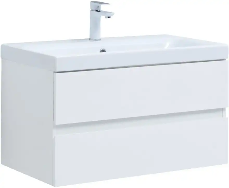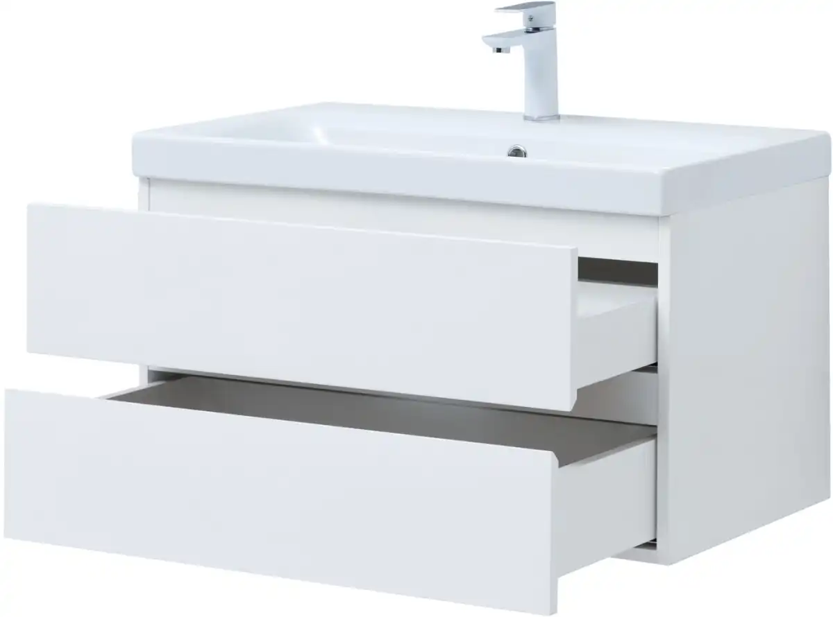 Тумба под раковину Aquanet Беркли 80 белый глянец (2 ящика) 302351