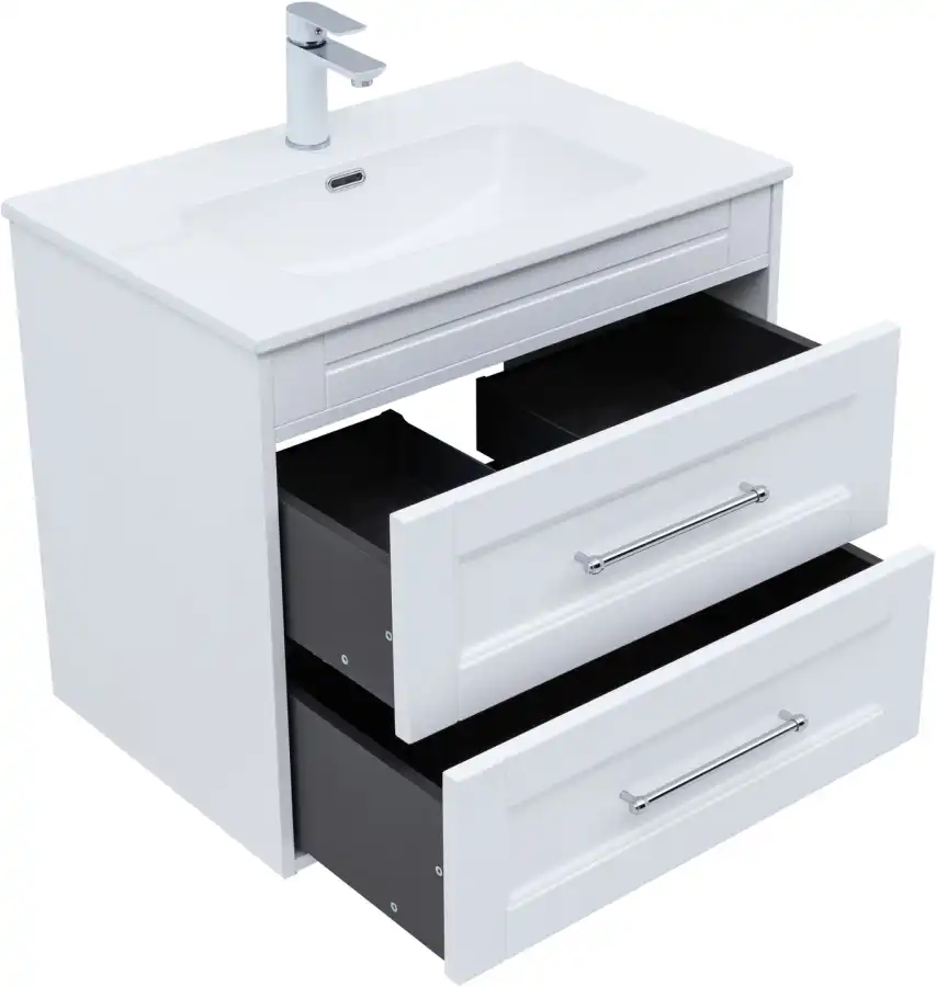 Для максимальной защиты от влаги корпус и фасады покрыты 5 слоями лакокрасочных материалов, а торцы обработаны 10 слоями полиуретанового грунта. Это делает тумбу идеальным выбором для ванной комнаты, где важна устойчивость к сырости.
