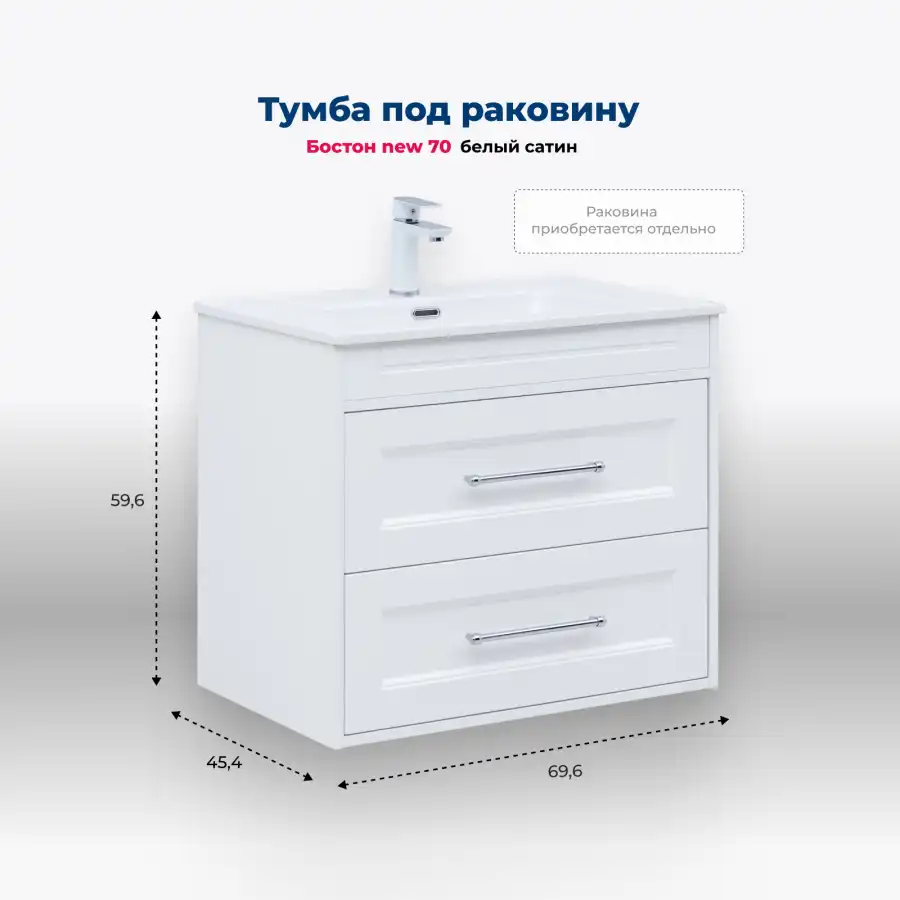 Тумба под раковину Aquanet Бостон new 70 белый сатин