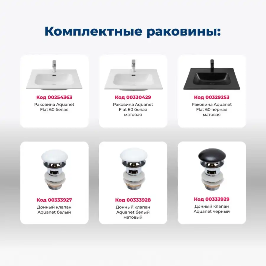 Тумба под раковину Aquanet Джейн (Flat) 60 белый матовый 335422