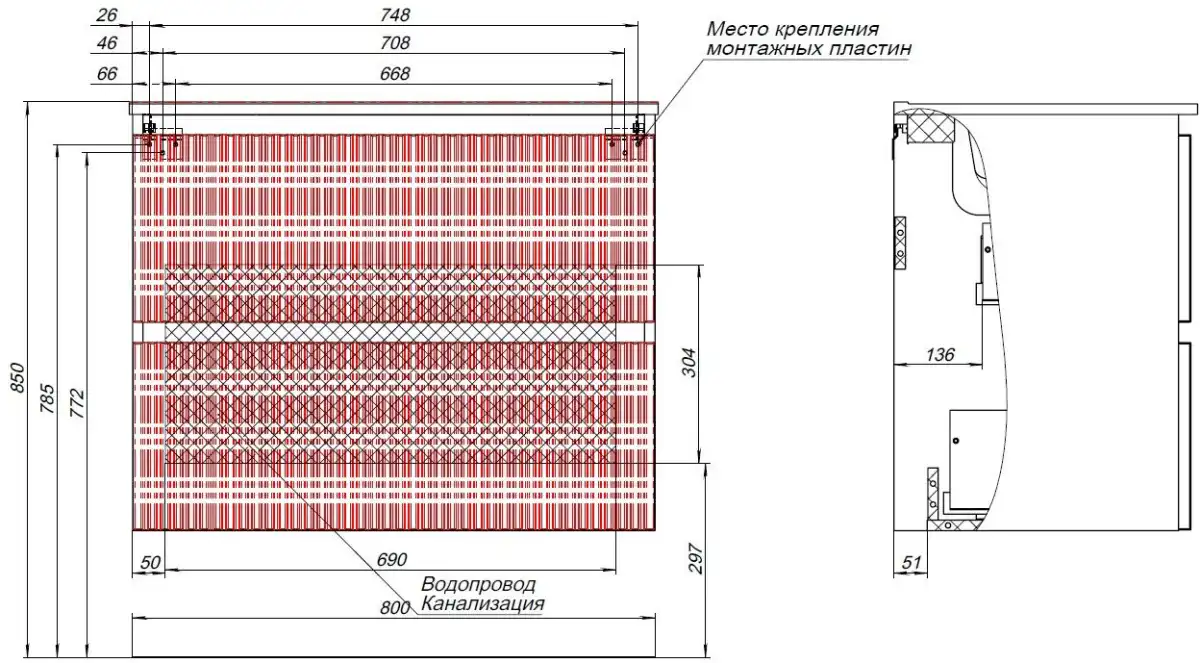 - тумба под раковину - 1 шт.