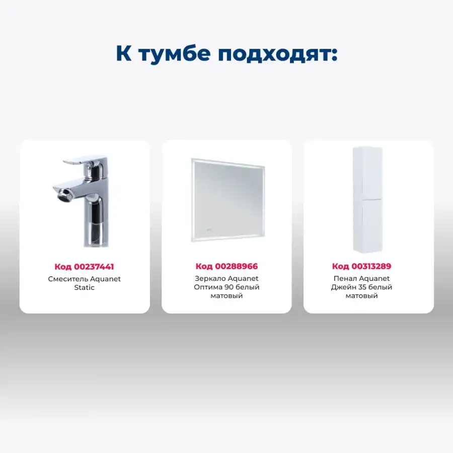 Тумба под раковину Aquanet Джейн (Flat) 90 белый матовый 335425