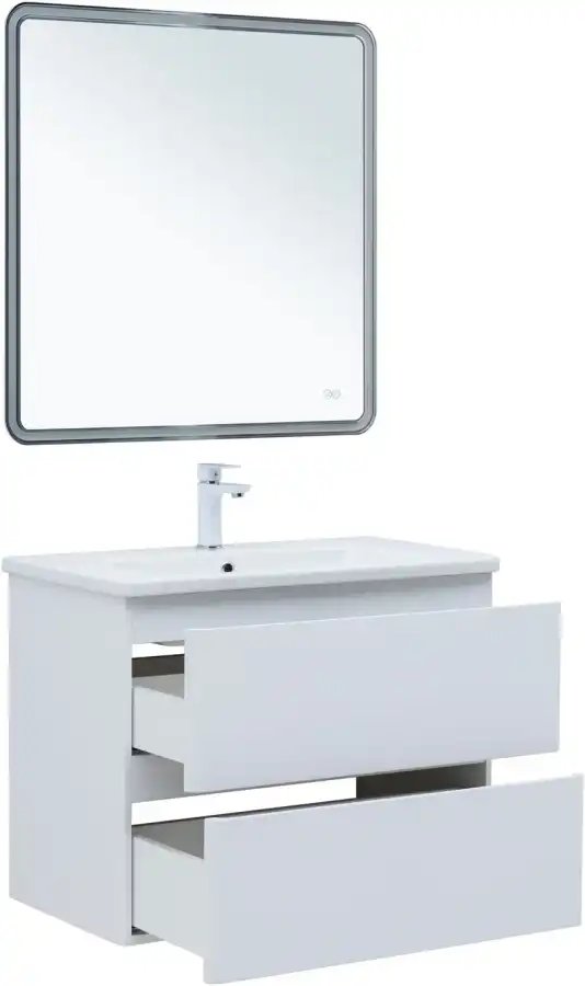 Тумба под раковину Aquanet Эмбер 80 см, подвесная, цвет Белый, 330467. Раковина приобретается отдельно.