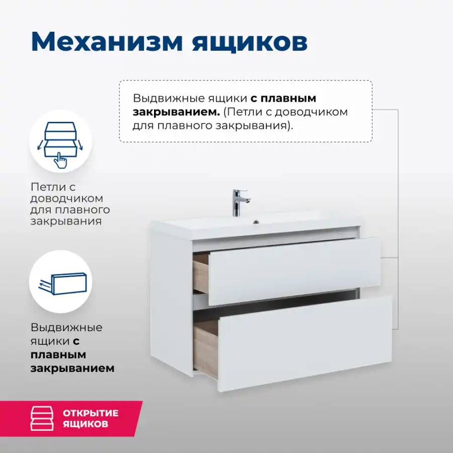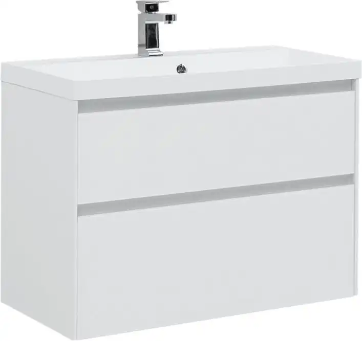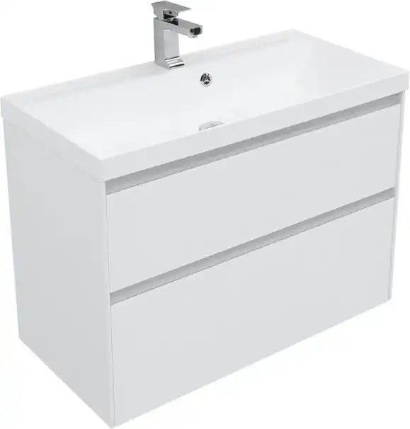 Тумба с раковиной Aquanet «Гласс» 90 белого цвета. Мебель дополнена двумя широкими и вместительными ящиками. Для их открывания применяют скрытые рукоятки, которые придают поверхности эстетичный внешний вид и не цепляются за одежду. Корпус изготовлен из МДФ. Специальное покрытие позволяет вести эксплуатацию в условиях высокой влажности. Размеры — 890х445х610 мм. На прямоугольной раковине «Орлеан» 90 размещено отверстие под кран. Основной материал — литьевой мрамор, отличающийся гладкостью и гипоаллергенностью. Он не впитывает запахи и сохраняет свою белизну в течение всего срока службы. Рекомендуем составить комплект из пенала «Гласс» 35, зеркало-шкафа «Латина» 90. Сверху можно разместить Aquanet WT-400 LED. Для напольной установки используют ножки (артикул 00181454), для крепления к стене — дюбели.