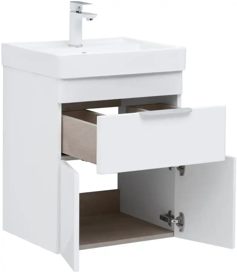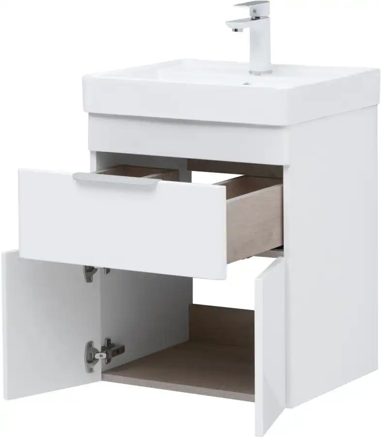 Тумба под раковину Aquanet Ирис new 50 см, подвесная, цвет Белый, 310147. Раковина приобретается отдельно.