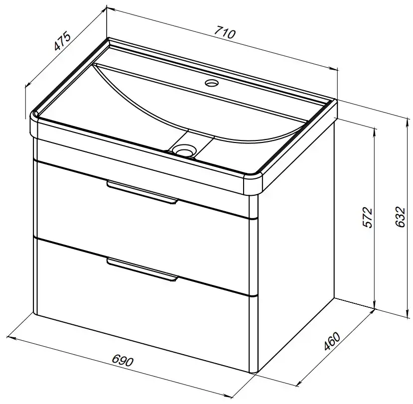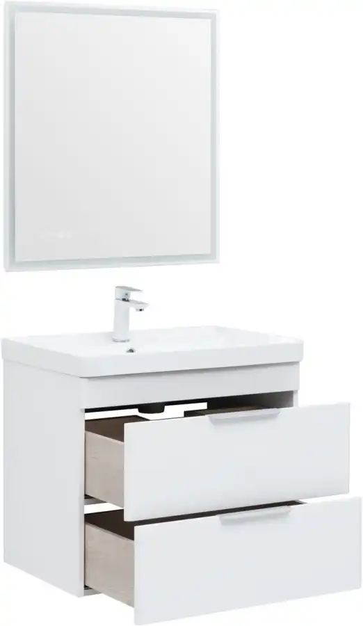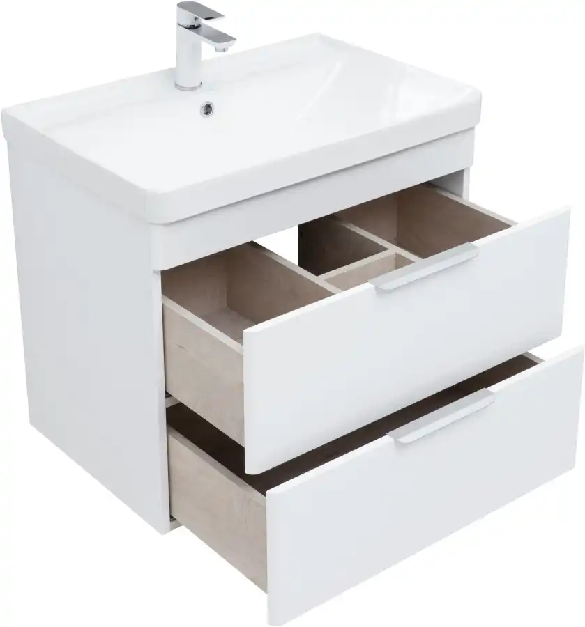 Тумба под раковину Aquanet Ирис new 70 см, подвесная, цвет Белый, 310145. Раковина приобретается отдельно.