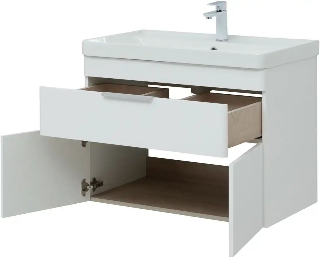 Тумба под раковину Aquanet Ирис new 85 см, подвесная, цвет Белый, 310150. Раковина приобретается отдельно.