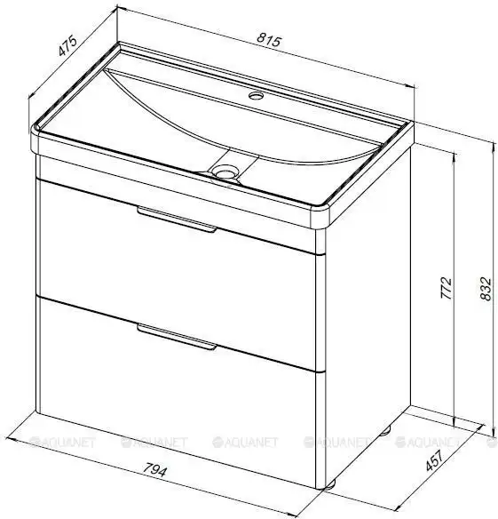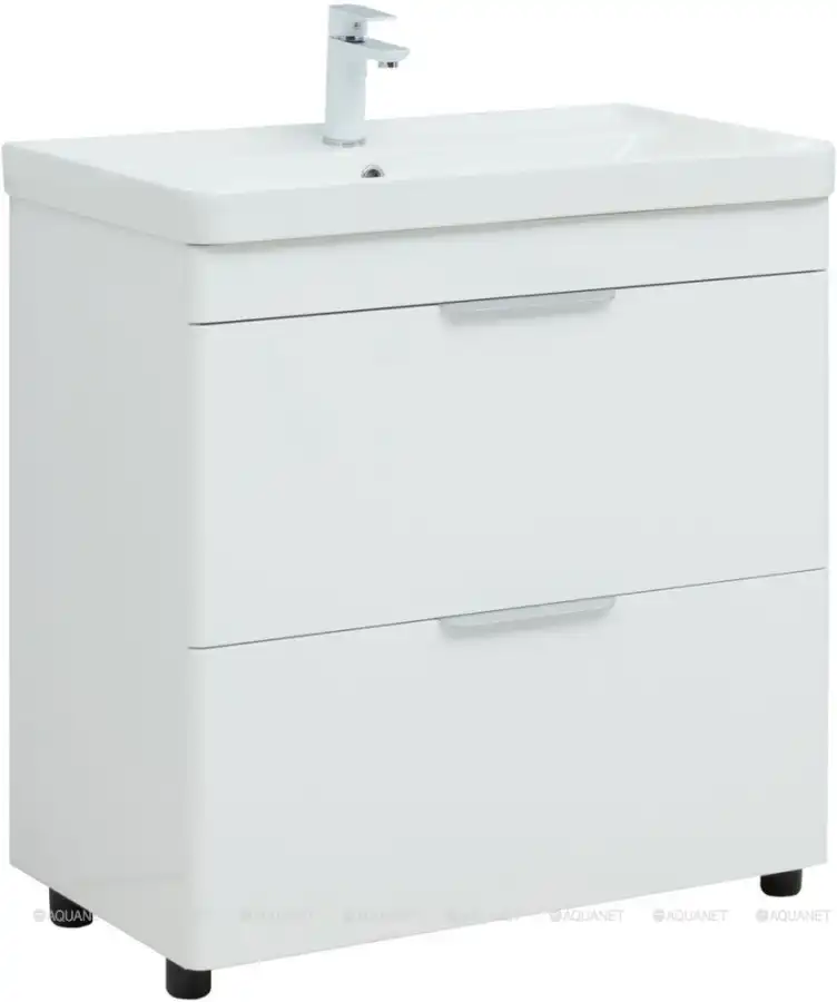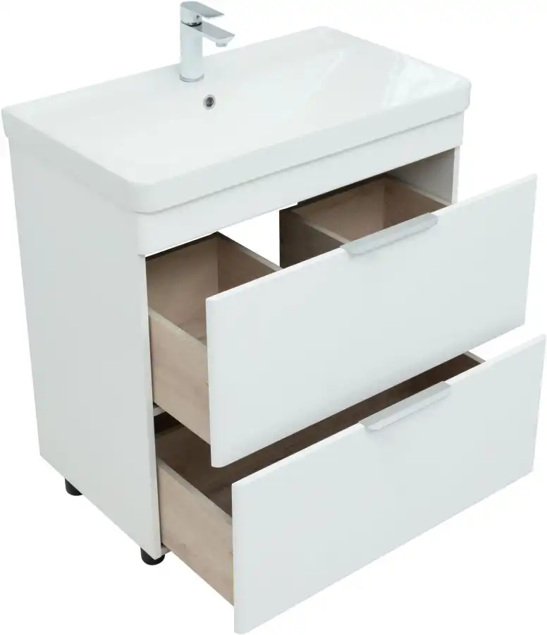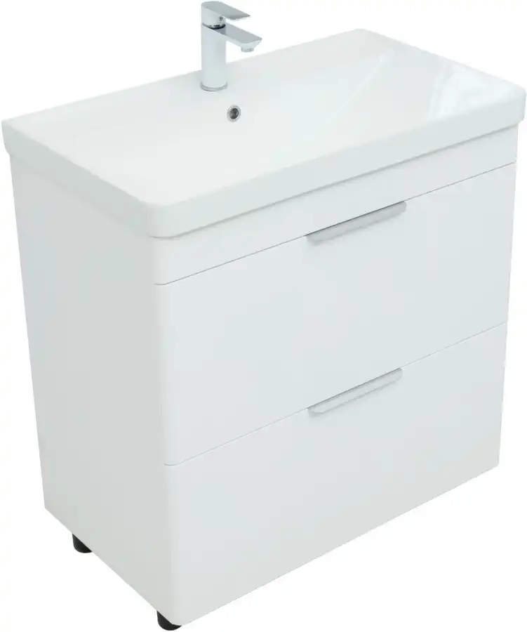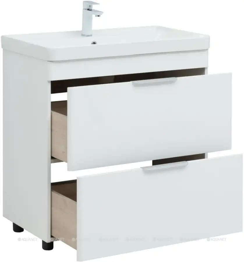 Тумба под раковину Aquanet Ирис new 85 белый глянец (2 ящика)