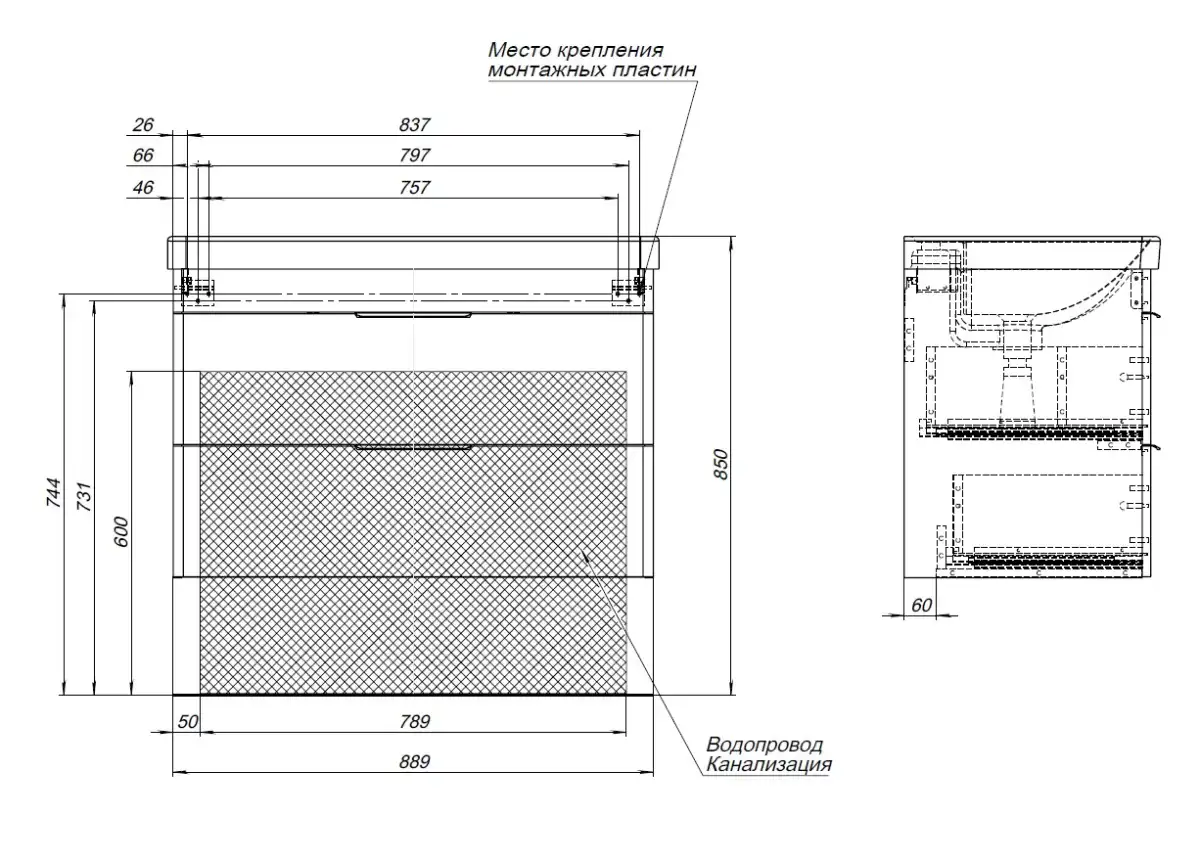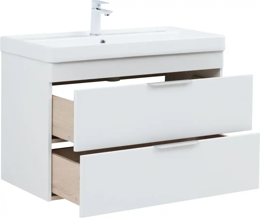 Тумба под раковину Aquanet Ирис new 90 см, подвесная, цвет Белый, 336311. Раковина приобретается отдельно.
