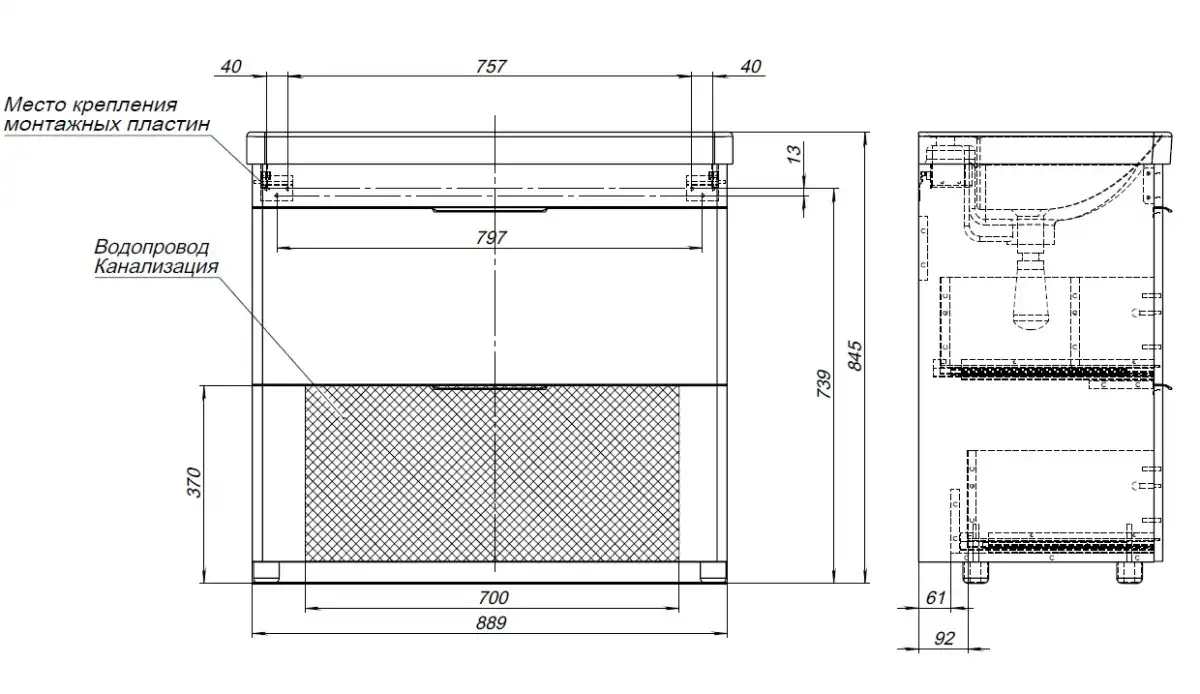 Тумба под раковину Aquanet Ирис new 90 см, напольная, цвет Белый, 336309. Раковина приобретается отдельно.