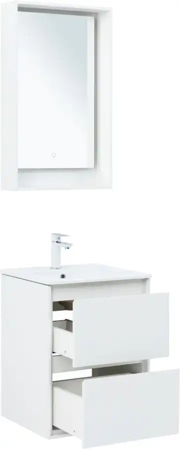 Тумба под раковину Aquanet Милан 50 белый глянец, подвесная, 336366