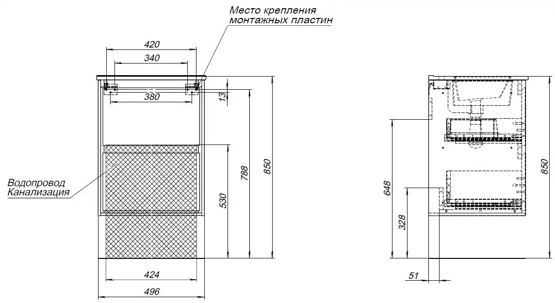 Тумба под раковину Aquanet Милан 50 см, подвесная, цвет Дерево темное, 336376. Раковина приобретается отдельно.
