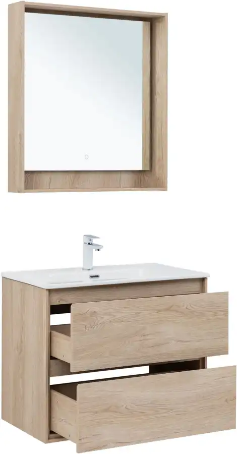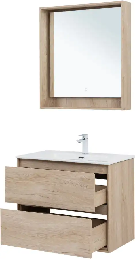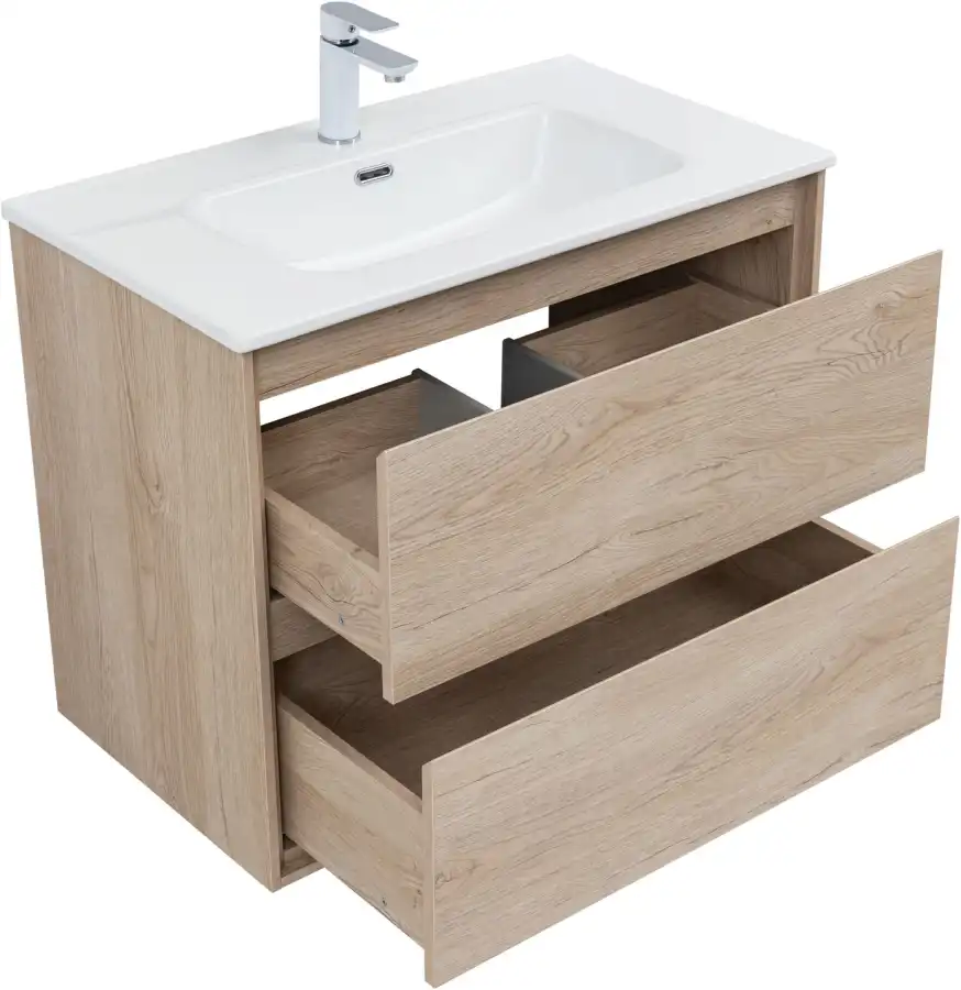 Тумба под раковину Aquanet Милан 80 дуб светлый, подвесная, 336384