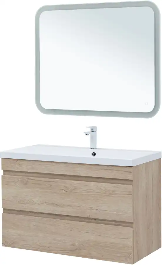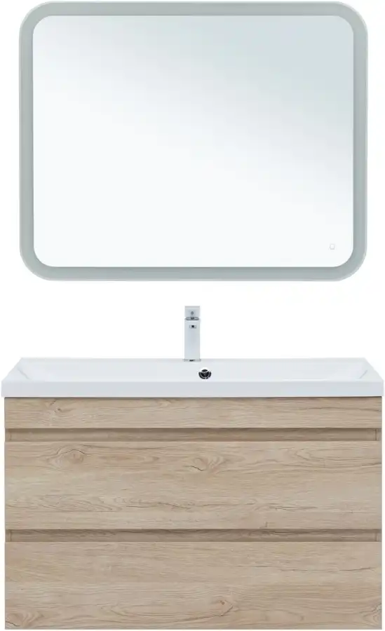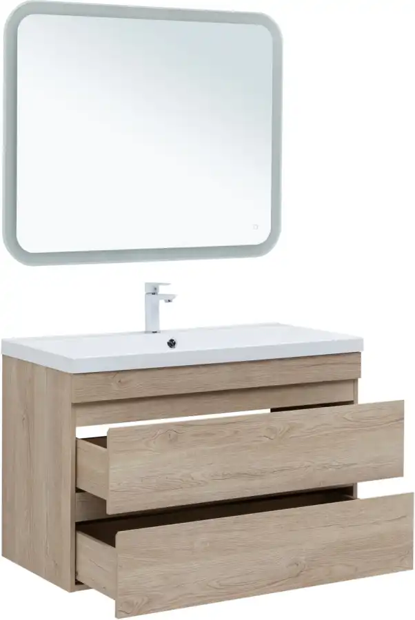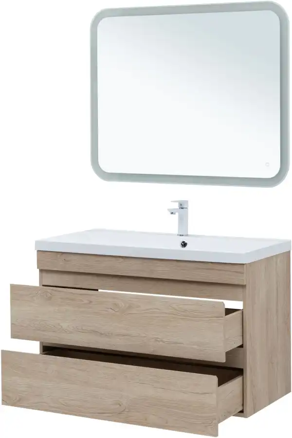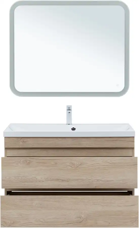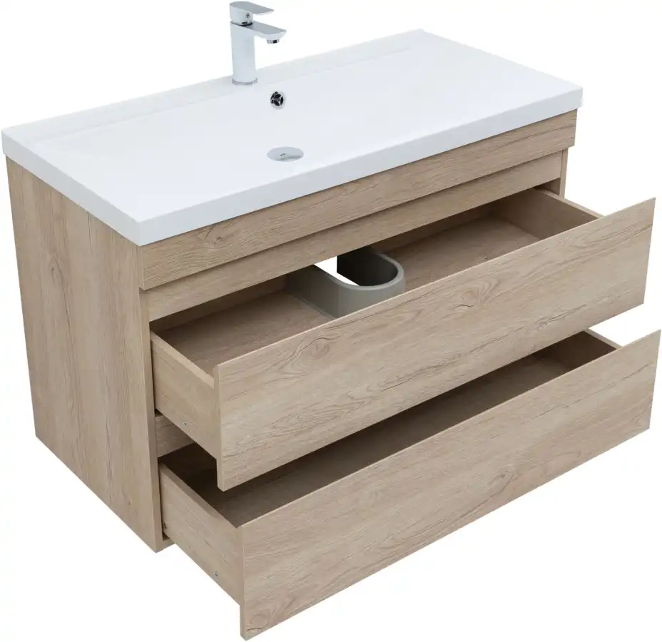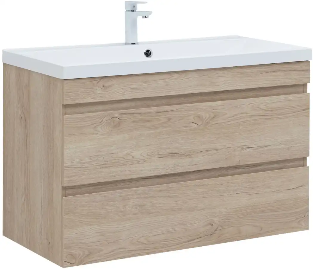 Тумба под раковину Aquanet Нота NEW 100 см, подвесная, цвет Дерево светлое, 334200. Раковина приобретается отдельно.
