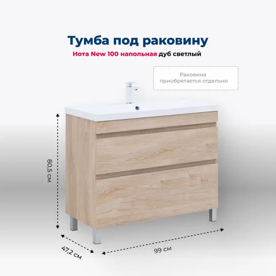 Тумба под раковину Aquanet Нота New 100 дуб светлый