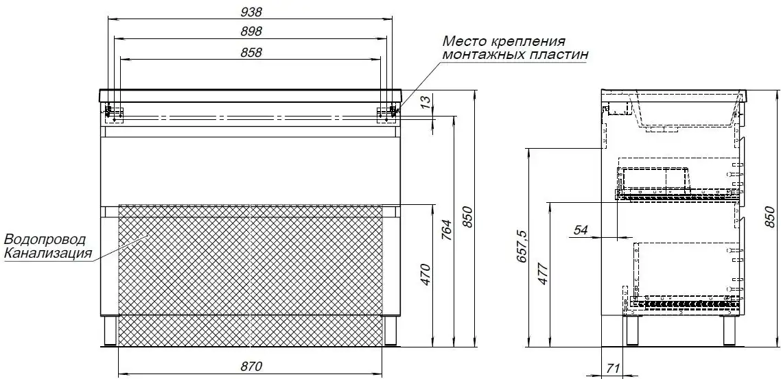 Усиленное дно нижнего ящика (16 мм влагостойкая ЛДСП)