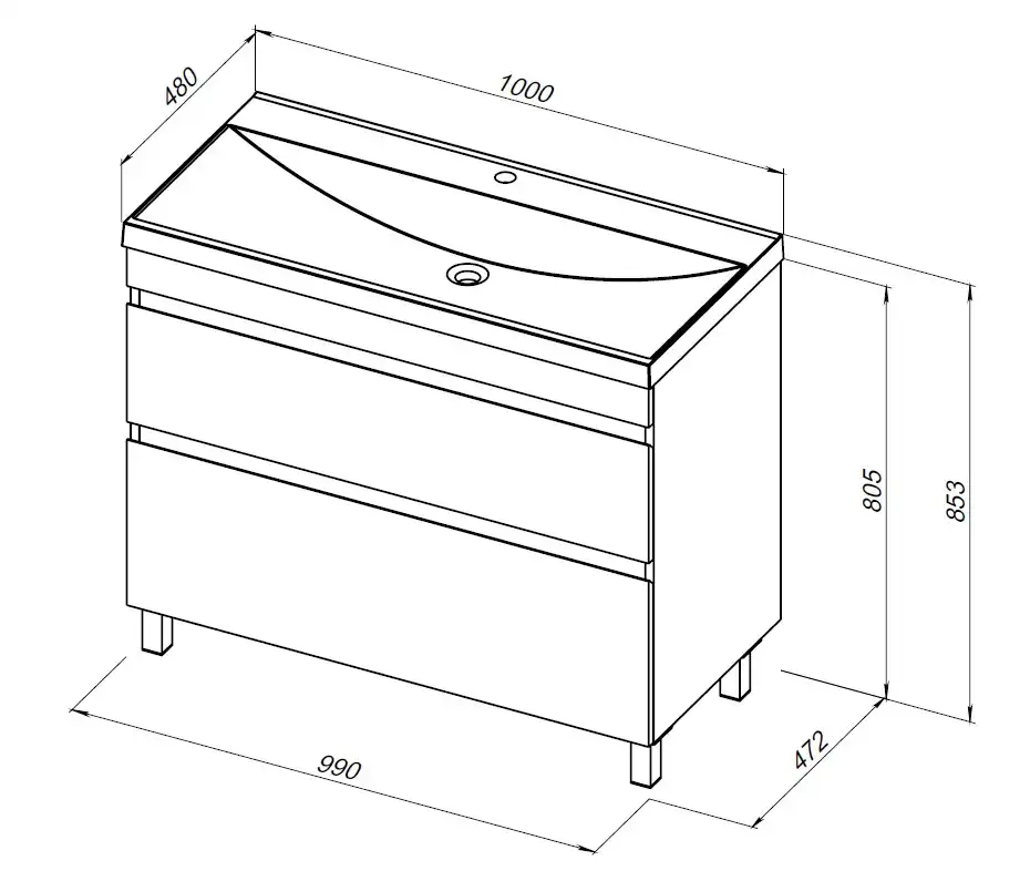 Размеры: Напольная тумба шириной 100 см.