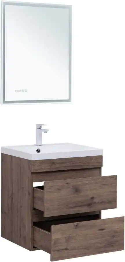 Тумба под раковину Aquanet Нота NEW 60 см, подвесная, цвет Дерево темное, 334191. Раковина приобретается отдельно.
