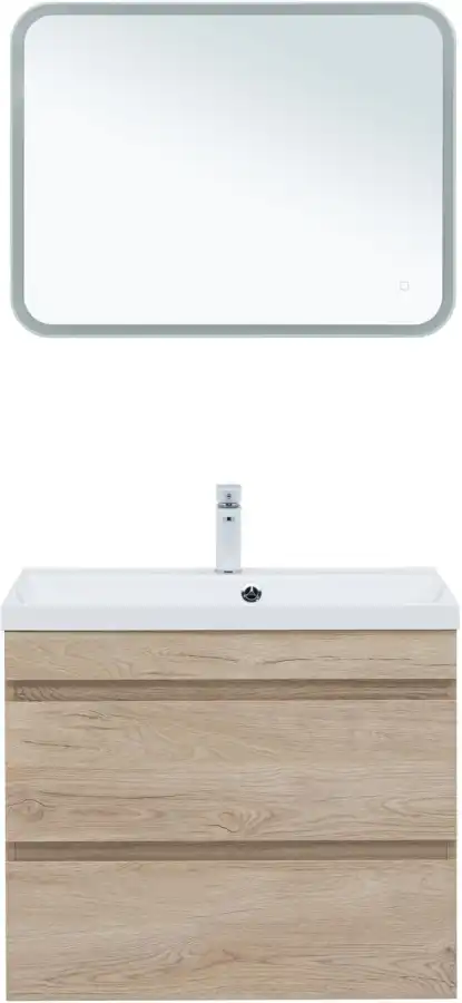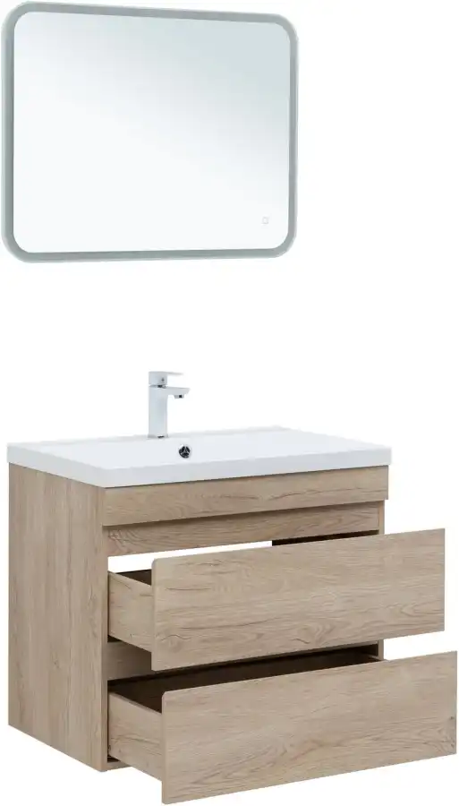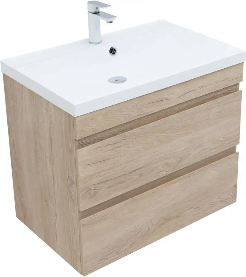 Тумба под раковину Aquanet Нота NEW 75 см, подвесная, цвет Дерево светлое, 334198. Раковина приобретается отдельно.