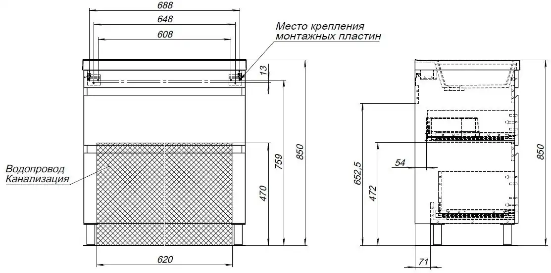 Специальный отсек для скрытого монтажа коммуникаций