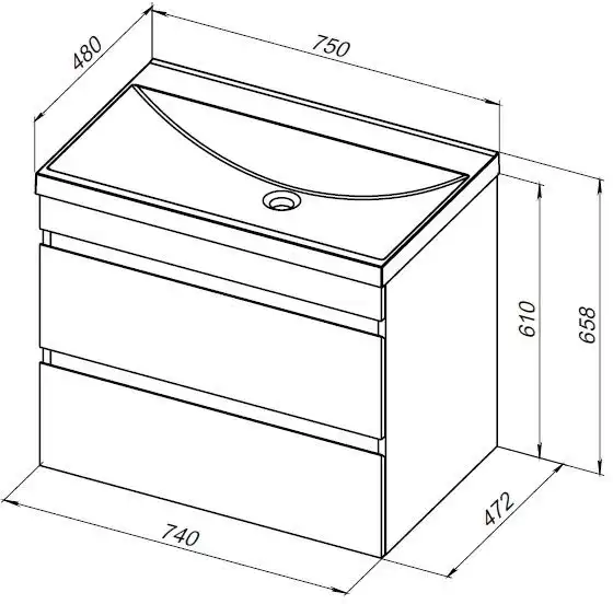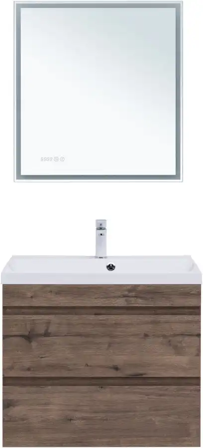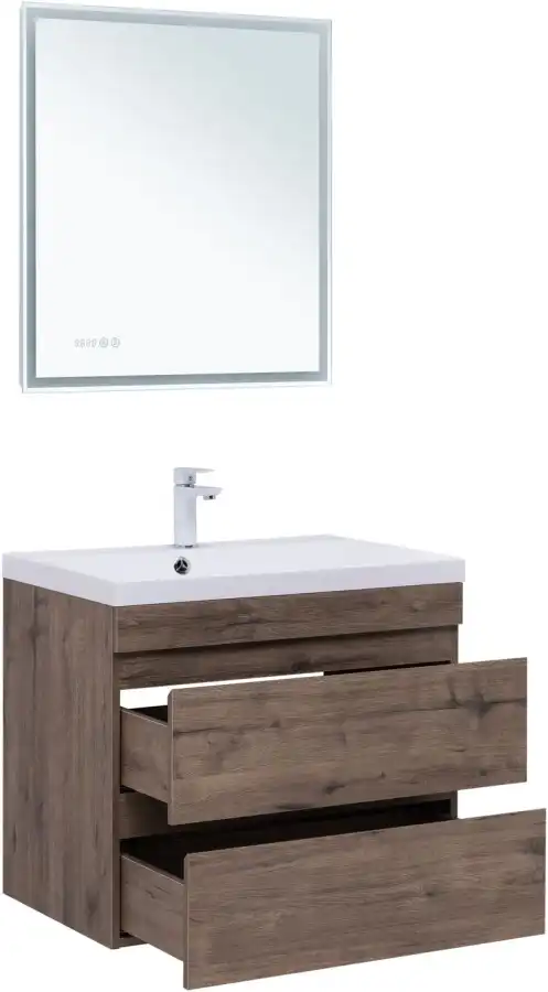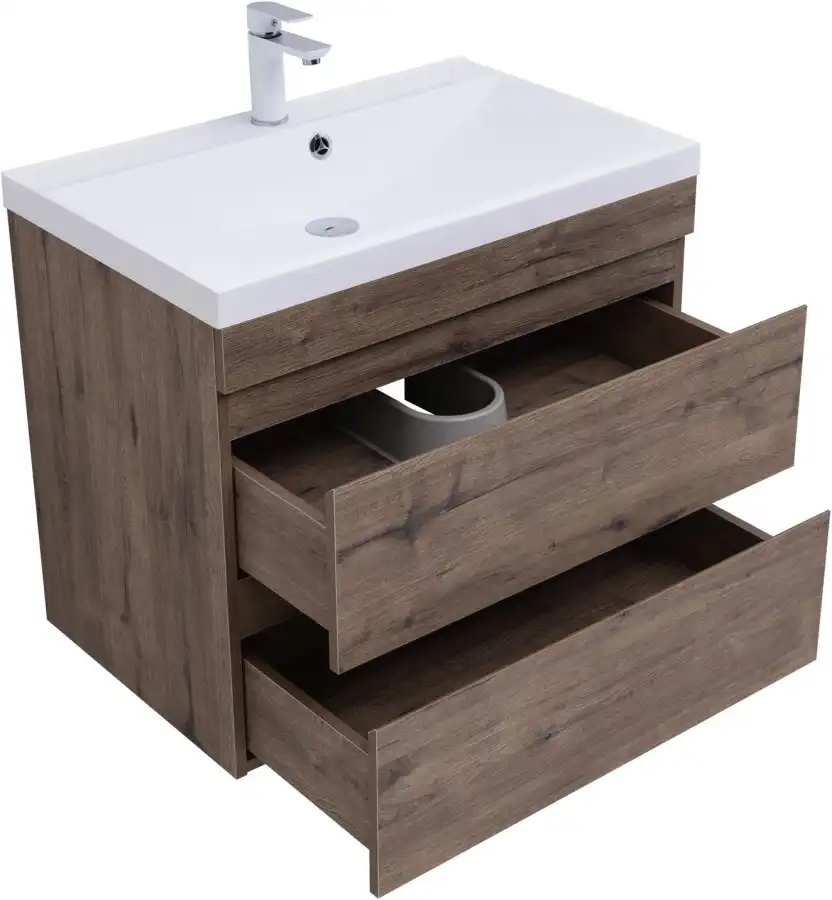Тумба под раковину Aquanet Нота NEW 75 см, подвесная, цвет Дерево темное, 334192. Раковина приобретается отдельно.