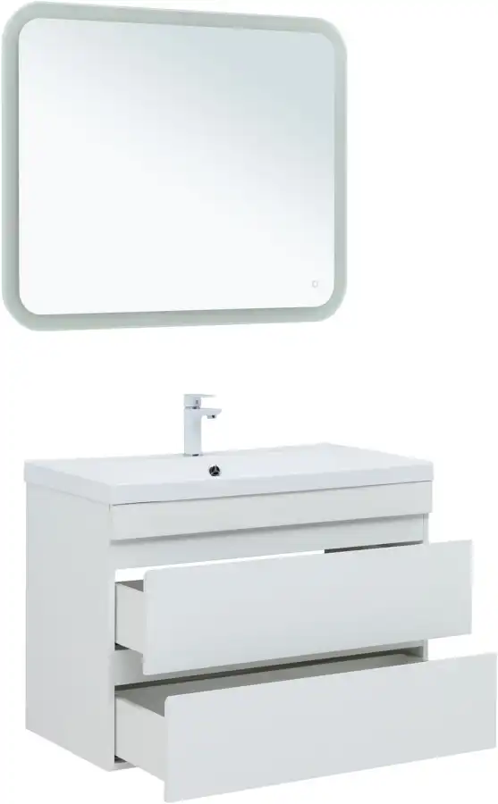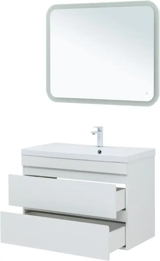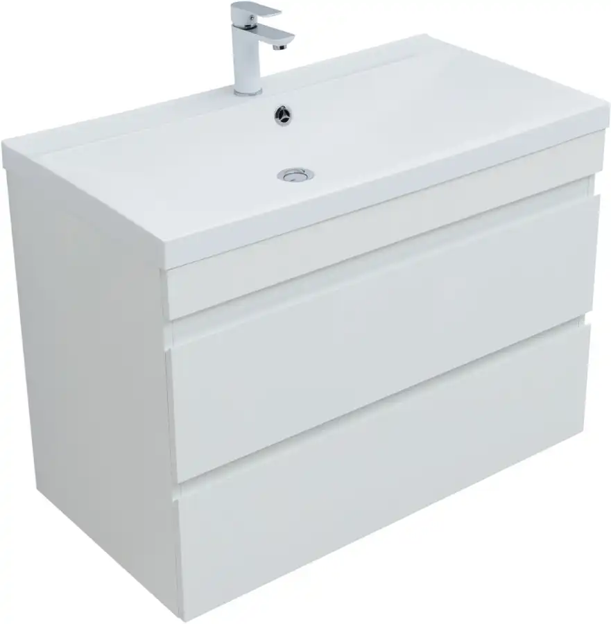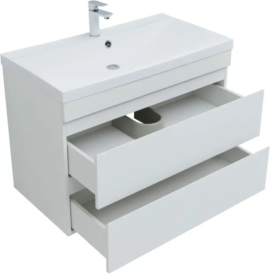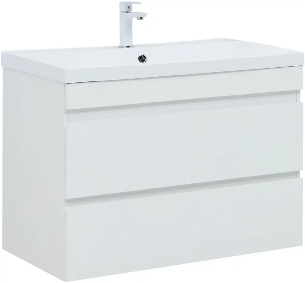Тумба под раковину Aquanet Нота NEW 90 см, подвесная, цвет Белый, 335419. Раковина приобретается отдельно.
