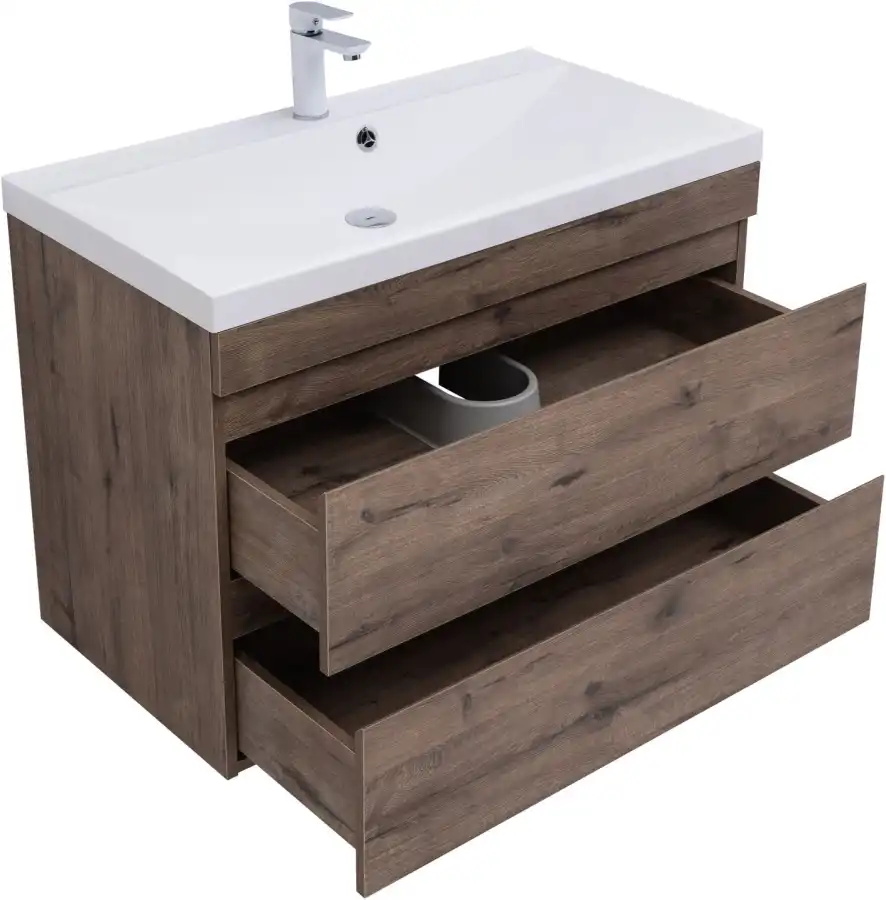 Тумба под раковину Aquanet Нота New 90 дуб веллингтон табак, 334193. Раковина приобретается отдельно.
