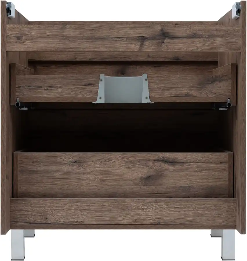 Функциональность: Удобные ящики с доводчиками, прочное дно и место для коммуникаций делают тумбу практичной.
