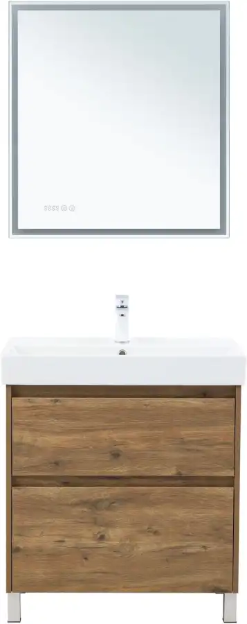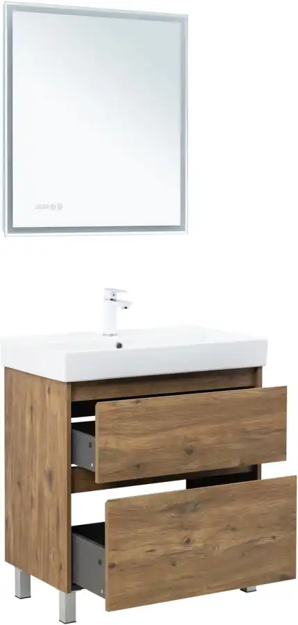 Стильная и практичная тумба для ванной комнаты с продуманной конструкцией. Модель Aquanet Nova Lite 2.0 75 выполнена в цвете дуб рустикальный – матовое покрытие имитирует фактуру натурального дерева и не оставляет отпечатков пальцев.