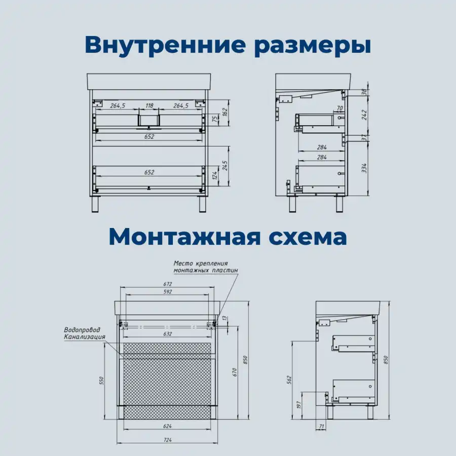 Корпус и фасады изготовлены из влагостойкой ЛДСП с ламинированным покрытием, что обеспечивает устойчивость к влаге и долговечность. Внутренние детали выполнены в цвете антрацит, создавая гармоничный контраст.