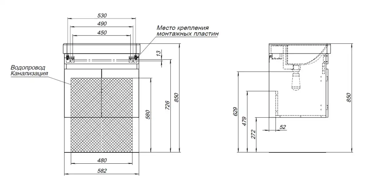 Тумба Aquanet Оптима 60 продумана до мелочей. В ней предусмотрено удобное место для подводки коммуникаций снизу, что облегчает установку и подключение сантехнического оборудования.