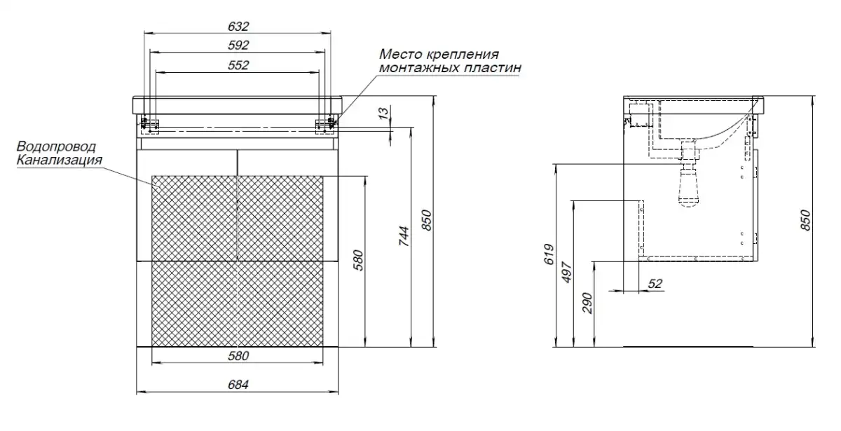 Тумба Aquanet Оптима 60 продумана до мелочей. В ней предусмотрено удобное место для подводки коммуникаций снизу, что облегчает установку и подключение сантехнического оборудования.