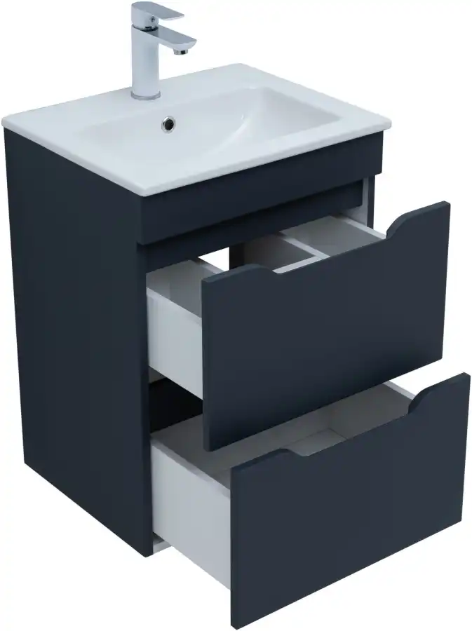- Тумба под раковину покрыта ПВХ пленкой с эффектом Soft touch;