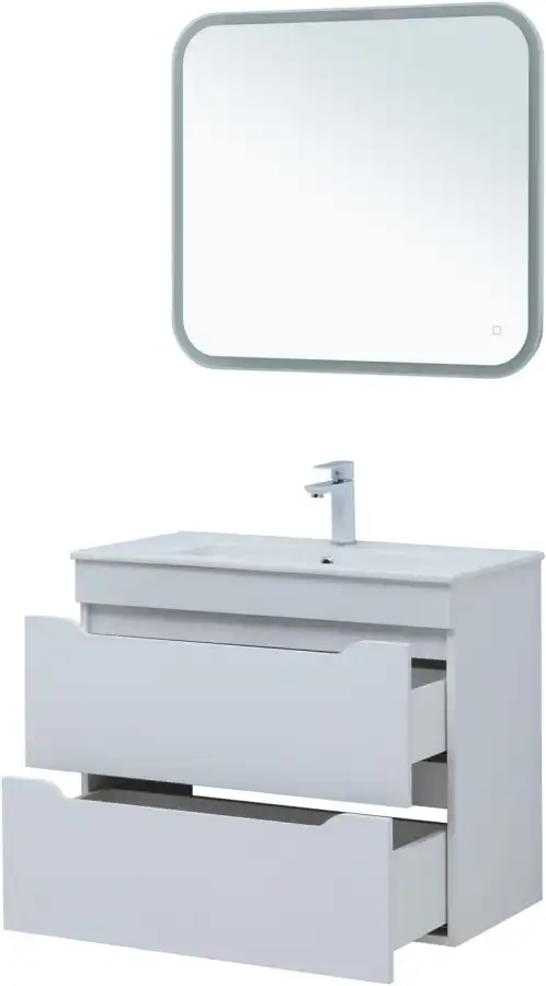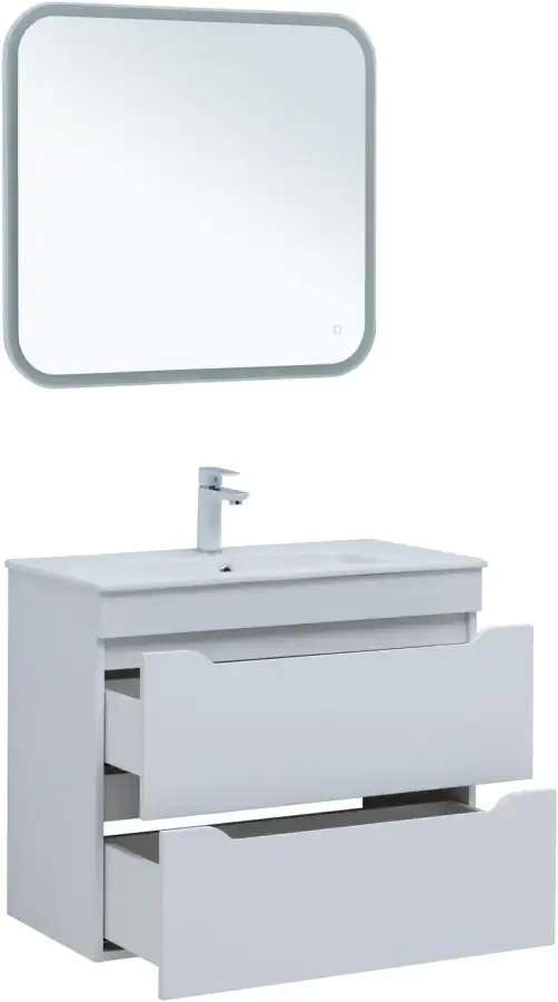 Тумба под раковину Aquanet Практика 80 белый глянец, 347965. Раковина приобретается отдельно.