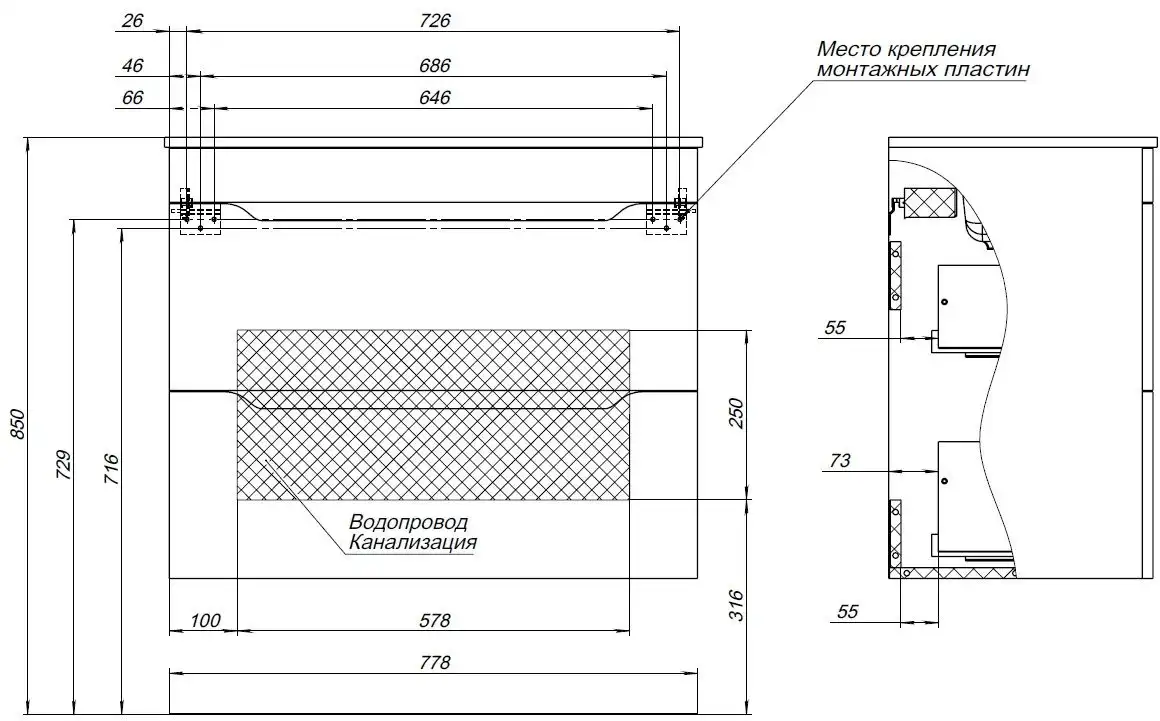 Дополнительный комфорт обеспечивается возможностью установки тумбы на универсальные опоры высотой 200 мм (продаются отдельно), позволяя создать идеальное положение и сочетание с другой мебелью вашей ванной комнаты.