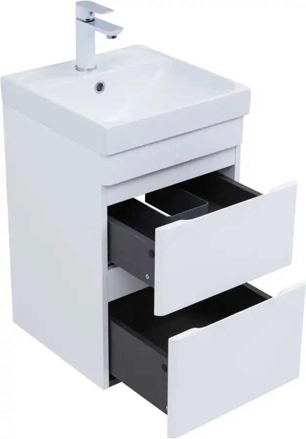 Тумба под раковину Aquanet Слим 40 белый сатин, 346045. Раковина приобретается отдельно.