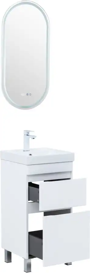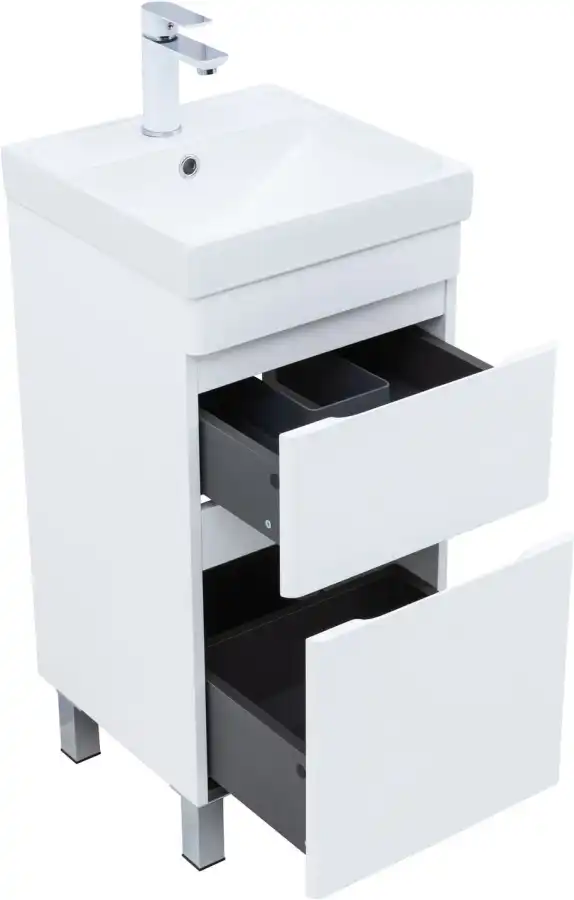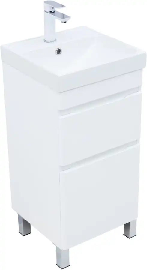 Тумба под раковину Aquanet Слим 40 напольная, белый сатин, 346040. Раковина приобретается отдельно.