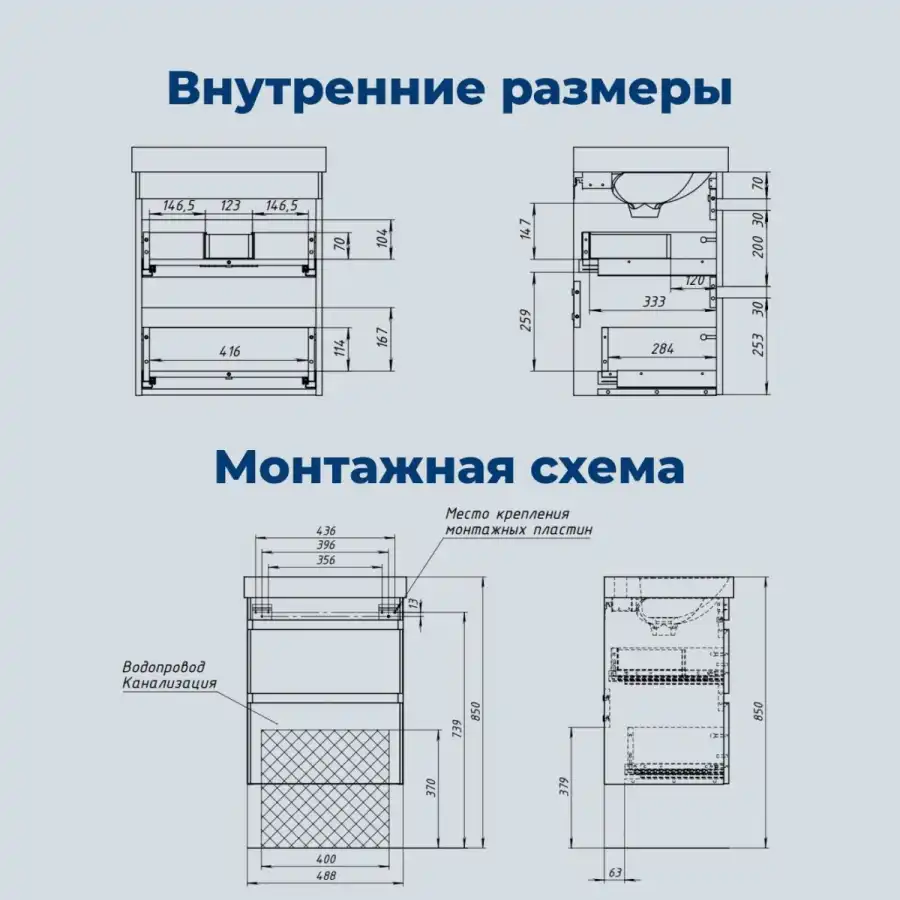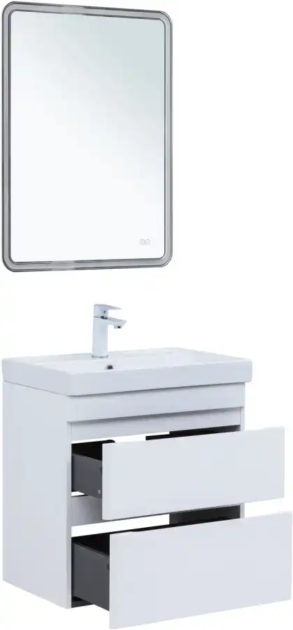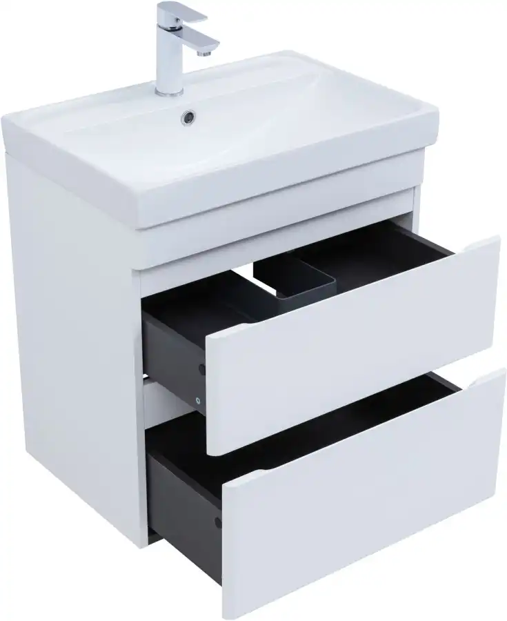 Тумба под раковину Aquanet Слим 60 белый сатин, 346047. Раковина приобретается отдельно.
