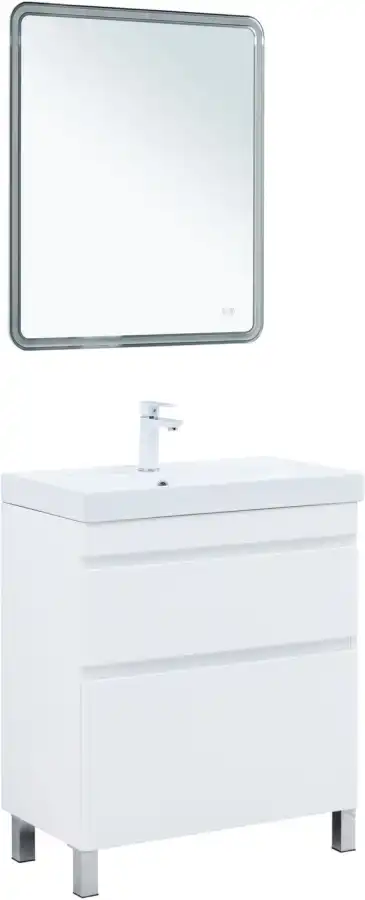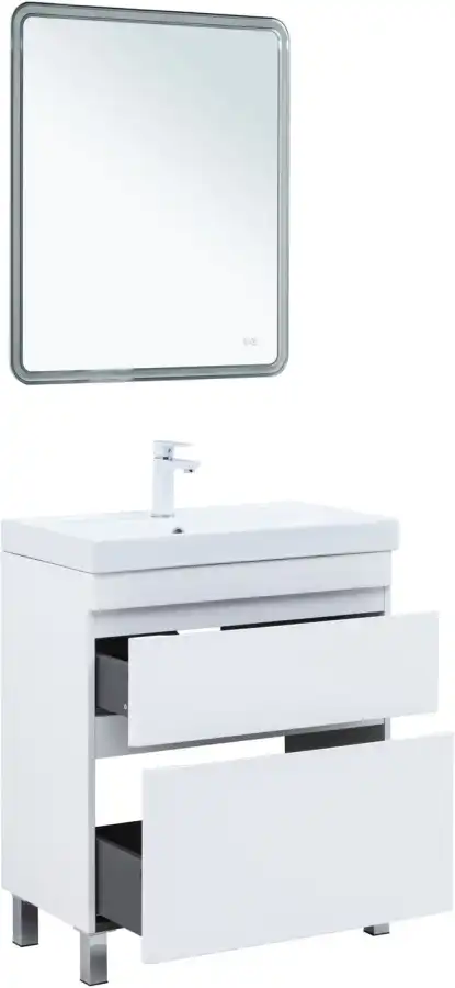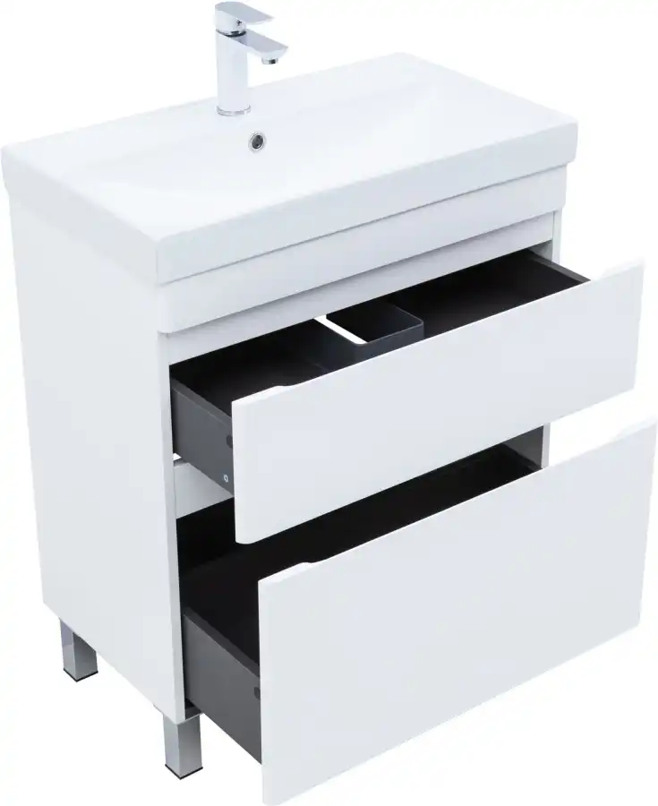 Тумба под раковину Aquanet Слим 70 напольная, белый сатин, 346043. Раковина приобретается отдельно.