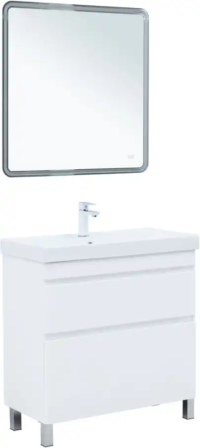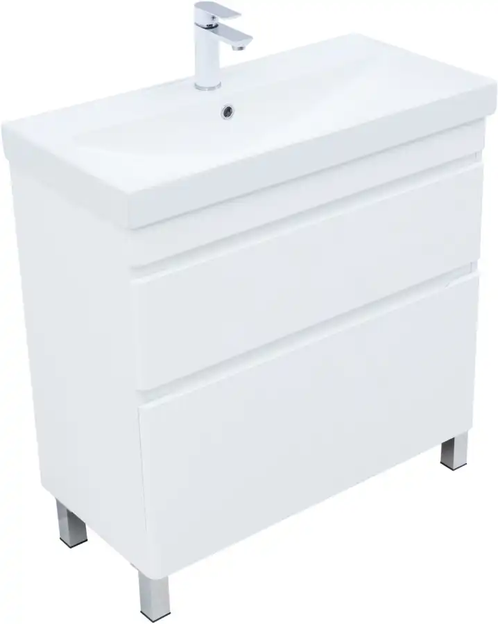 Тумба под раковину Aquanet Слим 80 напольная, белый сатин, 346044. Раковина приобретается отдельно.