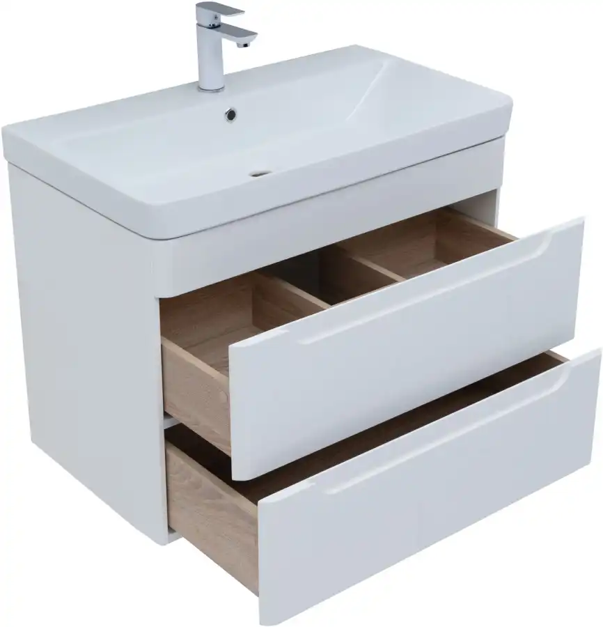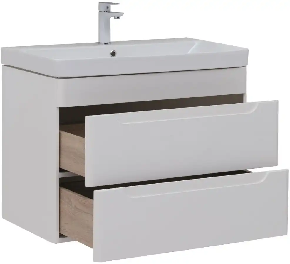 - Тумбы и раковина имеют скругленные углы - пространство ванной комнаты становится комфортнее и безопаснее