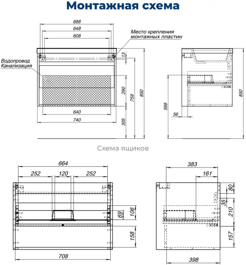 Направляющие скрытого монтажа с амортизатором гарантируют плавное и бесшумное открывание и закрывание ящиков. Пластиковое ограждение сифона в сером цвете добавляет аккуратности и завершенности. Надежные навесы обеспечивают выдерживание нагрузки до 130 кг, а предусмотренное место для подводки коммуникаций снизу делает установку максимально удобной.